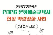 [ 한국미디어뉴스 이원희 기자 ] 인천중구문화원(원장 박봉주)이 문화체육관광부와 인천광역시가 주최하고, 인천문화재단 인천문화예술교육지원센터와 한국문화예술교육진흥원이 주관하는 '2026 문화예술교육사 현장 역량강화 사업(인천)'에 6년 연속 선정되는 쾌거를 달성했다. ‘문화예술교육사 현장 역량강화 사업’은 문화예술교육사의 전문성 강화를 통해 지역의 문화예술교육 역량을 높이고, 주민들을 위한 우수한 문화예술교육 프로그램 개발과 운영을 지원하는 사업이다. 인천중구문화원은 지난 5년간의 성공적인 사업 운영 성과를 인정받아 올해도 본 사업에 연속 선정되며, 지역 문화예술교육의 거점으로서 입지를 공고히 했다. 특히, 오는 7월 예정된 인천시 행정체제 개편에 따라 ‘인천영종구문화원’으로의 새로운 출발을 앞두고 있어 그 의미가 더욱 남다르다. 올 하반기부터 인천중구문화원은 ‘영종구’로 거점을 이전하여 지역적 특성을 반영한 새롭고 다채로운 문화예술교육 프로그램을 선보일 계획이며, 이에 발맞춰 영종구에서 새롭게 호흡을 맞추며 프로그램을 기획·운영할 역량 있는 신규 문화예술교육사 채용 진행중에 있다. 인