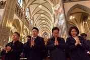[ 한국미디어뉴스 이원영 기자 ] 이재명 대통령과 김혜경 여사가 25일 서울 중구 명동대성당에서 열린 성탄 대축일 미사에서 기도를 하고 있다.