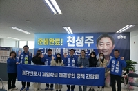 [ 한국미디어뉴스 이기선 기자 ] 천성주 검단구청장 예비후보가 검단신도시의 최대 현안인 과밀학급 문제와 아이들의 안전한 통학로 확보를 위해 아파트 입주예정자와 정책 간담회를 개최했다. 천성주 예비후보는 3일 검단신도시, e편한세상검단웰카운티 예비 입주자 대표단과 정책 간담회를 갖고, 현재 5년 이상 소요되는 공립학교 설립 기간을 3년으로 대폭 단축하는 ‘검단형 학교 신설 패스트트랙’정책을 발표했다. ■ “뒷북 행정으로 아이들만 고통” … 과밀학급 원인 진단 천성주 예비후보는 이날 간담회에서 검단신도시 교육 문제의 핵심 원인으로 ‘행정의 미스매치’와 ‘데이터 예측 실패’를 꼽았다. 천 예비후보는 “아파트 분양부터 입주까지 2~3년밖에 안 걸리는데, 학교 설립은 평균 5년이 소요되는 현행 시스템이 과밀학급의 근본 원인”이라며 , “특히 교육청이 신도시 특성을 무시하고 전체 평균치로 학령인구를 과소 추정하면서 수요 파악에 실패했다”고 강도 높게 비판했다. 이로 인해 아이들이 집 앞 학교를 두고 차로 20~30분 거리의 먼 학교로 배정받는 등 학습권 침해와 안전 문제가 심각하다고 지적했다. ■ ‘3년 내 학교 설립’ 등 파격적인 해법 제시 천 예비후보는 이를 해결하