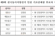 [ 한국미디어뉴스 이원영 기자 ] 제9회 전국동시지방선거 국민의힘 인천시당 공천관리위원회는 4월1일(수)부터 2일(목), 양일간 기초단체장 후보자 경선을 진행한 결과 금일 제5차 회의에서 아래가 같이 후보자 추천을 확정하였다. ◦ 확정된 후보자는 인천시당 운영위원회를 거쳐 중앙당 최고위원회 의결을 통해 최종 확정될 예정이다. -아래 -