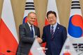 [ 한국미디어뉴스 이원영 기자 ] 이재명 대통령은 13일 방한 중인 도날드 투스크 폴란드 총리와 정상회담을 갖고 "양국 모두 중동전쟁이 불러온 위기에 대처하기 위해 글로벌 공급망의 안정화가 중요하다는 점에 공감하고, 이를 위해 필요한 협력을 이어 나가기로 뜻을 모았다"고 밝혔다. 이 대통령은 이날 청와대에서 투스크 총리와의 정상회담 후 가진 공동 언론발표를 통해 "양국 관계를 '포괄적 전략 동반자 관계'로 격상하기로 했다"며 이같이 말했다. 이 대통령은 "양국은 포괄적 전략 동반자로서 글로벌 경제·안보의 불확실성이 높아지는 가운데 양국 간 긴밀한 소통을 강화하기로 했다"며 "총리님과 저는 무엇보다 한반도와 유럽의 안보가 긴밀히 연결돼 있다는 점에 공감했다"고 말했다. 이어 "양국이 각 지역의 평화와 번영을 위해 힘쓰는 동시에 세계적인 차원의 평화를 위해 함께 노력하기로 했다"고 덧붙였다. 이 대통령은 또 "양국이 채택한 공동성명에는 첨단산업 및 과학기술, 우주, 에너지, 인프라 분야 등 포괄적이고 미래지향적 분야로 협력의 지평을 넓혀가겠다는 양국의 확고하고 분명한 의지가 담겨있다"고 소개했다. &