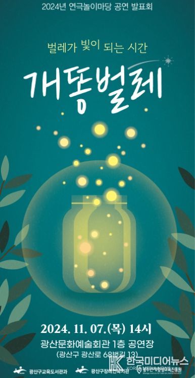 [ 한국미디어뉴스 기자 ] 광주광역시 광산구는 11월 7일 오후 2시 광산문화예술회관에서 장애인 연극놀이마당 공연발표회 ‘개똥벌레-벌레가 빛이 되는 시간’이 개최된다고 밝혔다.