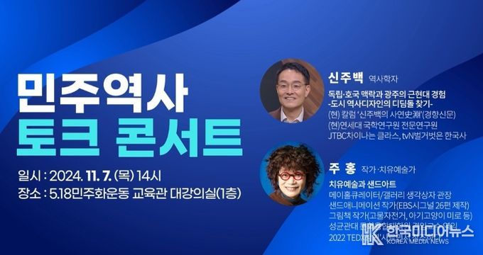 [ 한국미디어뉴스 기자 ] 광주광역시는 민주시민교육의 하나로 7일 오후 2시 5·18민주화운동 교육관에서 ‘민주역사 토크콘서트’를 개최한다.