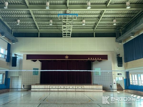 동명초 다목적강당은 지난해 설계를 마친 후 올해 2월에 착공, 약 8개월간의 공사를 거쳐 지상 2층, 연면적 862㎡ 규모로 완공됐다.
