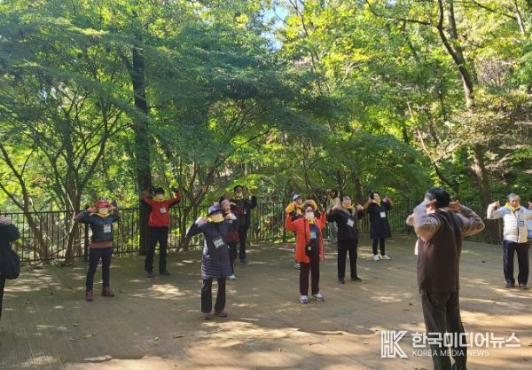 참여 주민, 어르신들은 이날 금성산 숲 치유, 손의 소근육을 자극하는 잔 받침 만들기 체험 등을 진행했다. '끝'