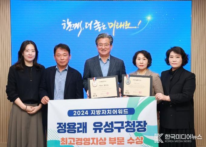 [ 한국미디어뉴스 기자 ] 정용래 유성구청장이 지난 11일 광명 아이벡스에서 열린 ‘2024 지방자치 어워드’에서 최고경영자상을 수상했다고 밝혔다.