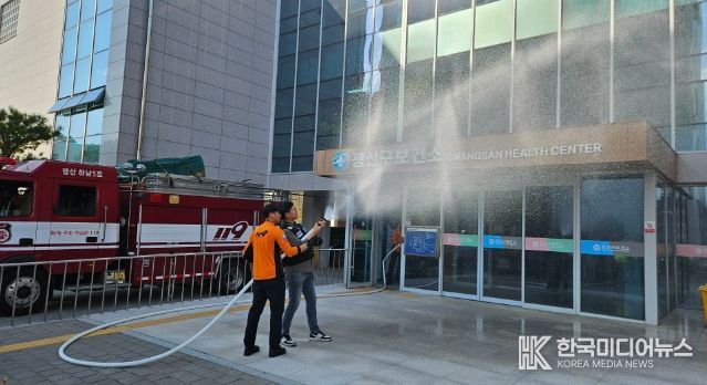 이날 훈련은 보건소 전 직원을 대상으로 광산소방서와 협력해 화재 예방 동영상 시청과 강연, 소화기 사용법 등 다양한 훈련을 진행했다.