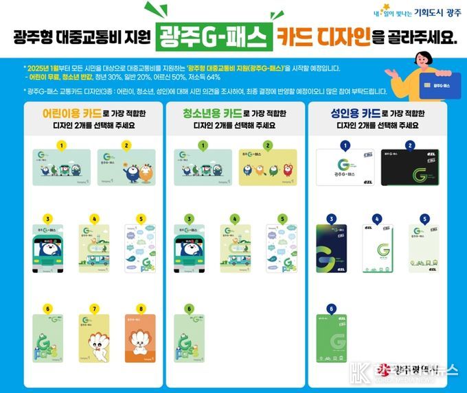 백은정 대중교통과장은 “광주G-패스는 시민의 다양한 의견을 수렴해 만든 시민의 정책”이라며 “카드 디자인 선호도 조사에 많은 시민이 적극 참여해 마지막 퍼즐을 완성해 주길 바란다”고 말했다.