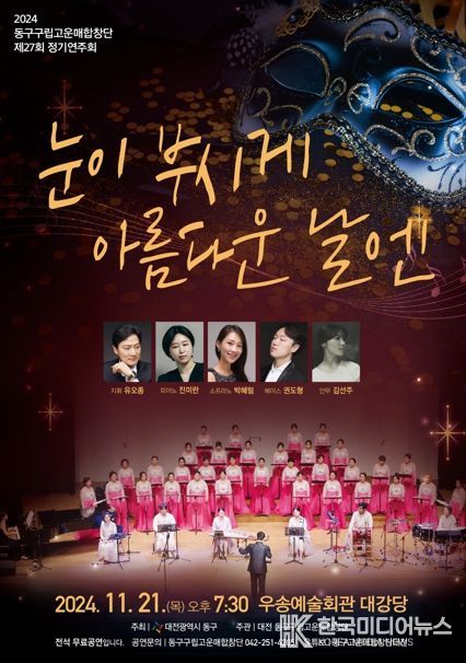 [ 한국미디어뉴스 기자 ] 대전 동구는 오는 21일 오후 7시 30분 자양동 우송예술회관에서 ‘제27회 동구 고운매합창단 정기연주회’를 개최한다.