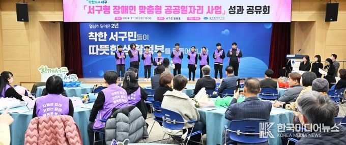 서구는 20일 서구청 들불홀에서‘서구형 장애인 맞춤형 공공일자리사업 성과공유회’를 열고 그간의 사업 성과를 공유하는 자리를 가졌다. 특히 이날 성과공유회는 장애인들이 행사 진행과 공연 등을 맡아 장애인과 비장애인의 구분 없는 일상의 필요성을 강조했다.