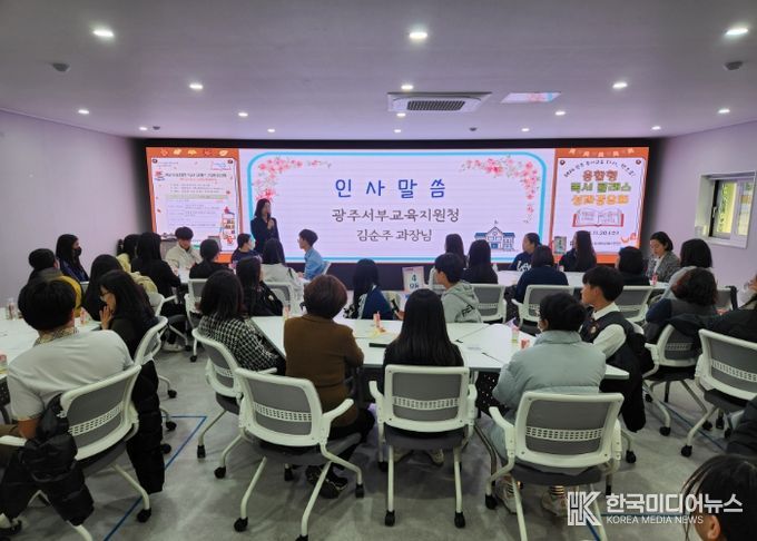 [ 한국미디어뉴스 기자 ] 광주서부교육지원청은 지난 20일 광산구 아이와즈 회의실에서 관내 중학생과 지도교사 23개 클래스 60명이 참여한 가운데 ‘융합형 독서교육 성과공유회’를 개최했다.