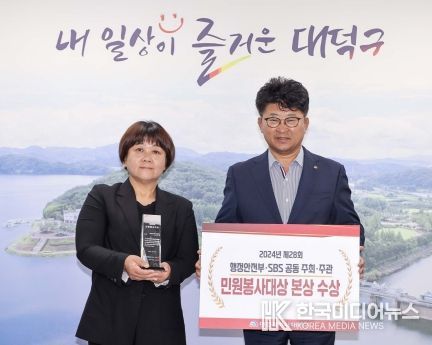 이번 수상을 통해 대덕구는 지난해 박진영 주무관의 대상 수상에 이어 2년 연속으로 민원봉사대상 수상자를 배출하는 쾌거를 거뒀다.