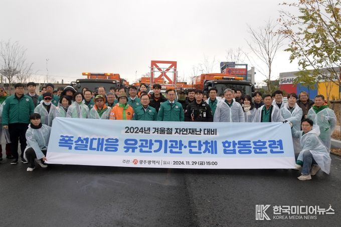 [ 한국미디어뉴스 기자 ] 광주광역시는 29일 광산구 무진로~월전동 미개통 도로에서 경찰, 소방, 자치구, 제2순환도로, 자율방재단 등과 함께 ‘2024 겨울철 폭설대응 유관기관 합동훈련’을 실시했다.