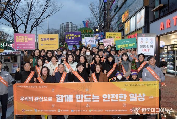 [ 한국미디어뉴스 기자 ] 광주광역시는 ‘2024년 여성폭력 추방주간(11월25일~12월1일)’을 맞아 29일 첨단지구 LC타워 만남의 광장에서 ‘우리의 관심으로 함께 만드는 안전한 일상’을 주제로 유관기관 합동캠페인을 실시했다.