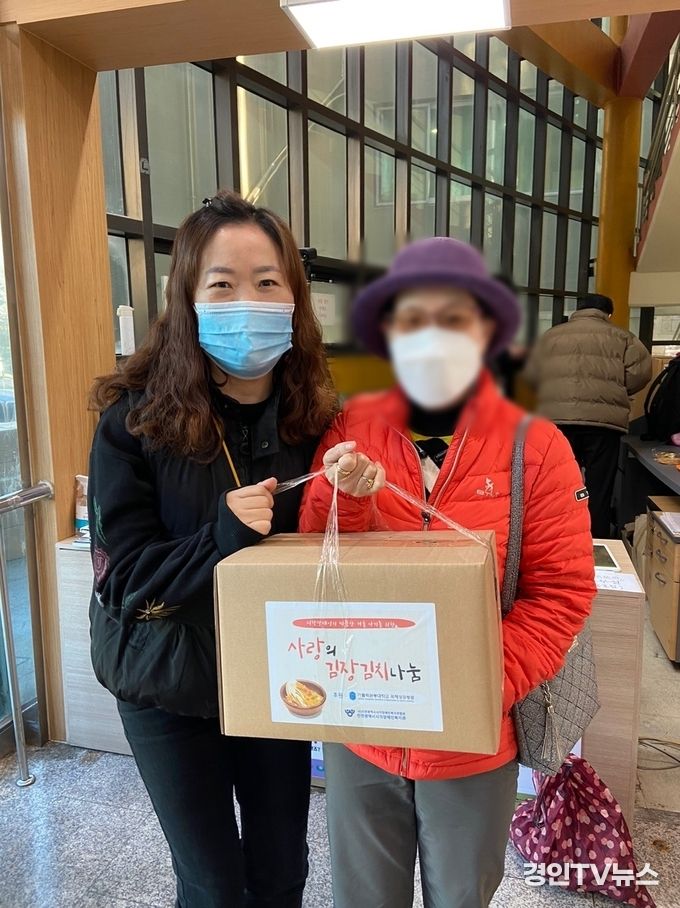 [ 경인TV뉴스 김선근 기자 ] 국제성모병원(병원장 김현수 토마스 신부)은 인천광역시시각장애인복지관(관장 이춘노)에 인천 서구지역 시각장애인 가정의 동절기 김장김치 전달을 위한 후원금 백만원을 전달했다. 이번 나눔은 병원이 위치해 있는 인천 서구지역 재가 시각장애인 가정에 김장김치를 지원하여 시각장애인들에게 경제적 부담을 덜어주고 따뜻한 정을 나누는 기회가 되었다.