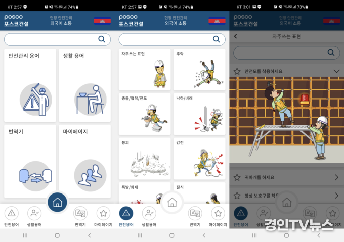 [ 경인TV뉴스 김선근 기자 ] 포스코건설이 약 15%에 달하는 외국인 근로자들과 원활한 언어소통을 위해 5개국어로 된 소통앱을 개발했다.