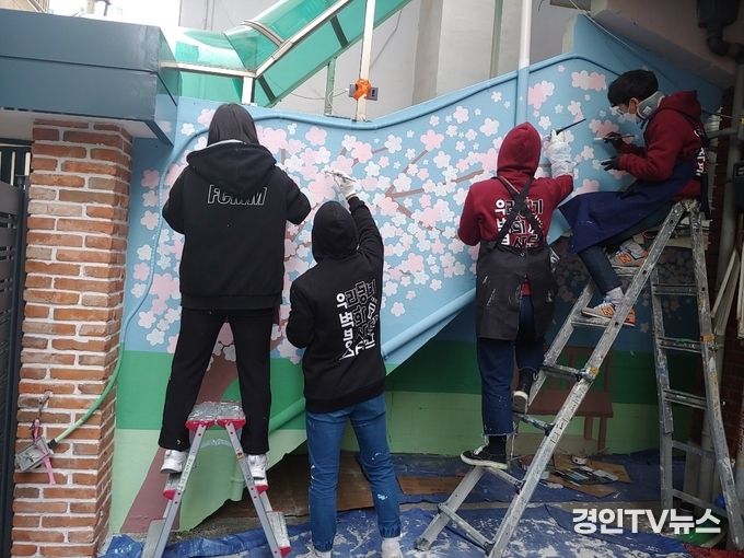 [ 경인TV뉴스 김선근 기자 ] 인천 부평구노인복지관(관장:최민수)은 우리동네벽화봉사단(단장:김상훈)과 연계하여 부평4동 중앙 경로당을 작은 복지센터형 개방형 경로당 벽화 그리기 사업 을 최근 마무리했다고 밝혔다.