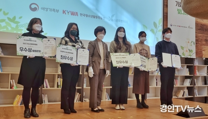 [ 경인TV뉴스 김선근 기자 ] 커뮤니티하우스 마실에서 오후 2시에 개최된 청소년특별회의 결과보고회에서 인천광역시청소년활동진흥센터(인천광역시청소년참여위원회)가 2021년 정책제안 우수사례 부문 전국 최우수 사례로 선정되어 여성가족부장관상을수상했다고 3일 밝혔다.