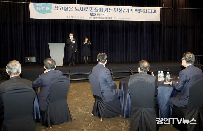 [ 경인TV뉴스 김선근 기자 ] { 포토 뉴스 } 홍인성 중구청장은 페이스북에서 지난달 24일 인천광역시사회복지협의회가 우리 중구 베스트웨스턴 하버파크호텔에서 주최한‘2021년 제46회 인천복지포럼’에 참석했다고 밝혔다.