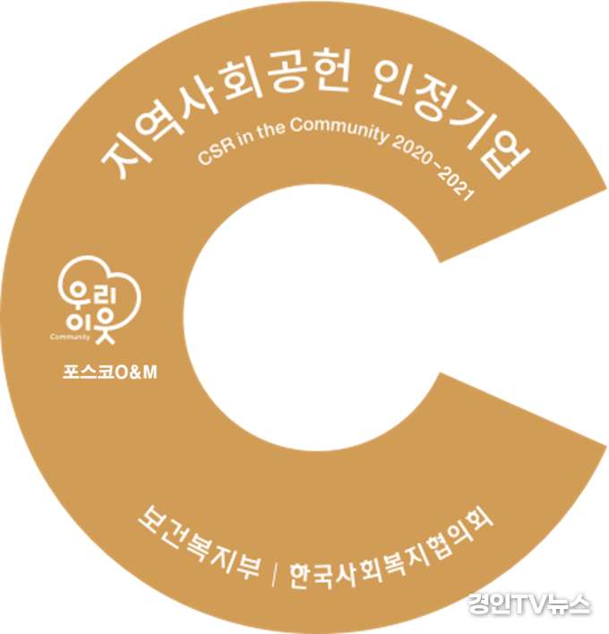 [ 경인TV뉴스 김선근 기자 ] 포스코O&M (김정수 대표)은 12월 3일 보건복지부와 한국사회복지협의회 주관 ‘2021지역사회공헌 인정제’ 시상식에서 지역사회공헌 인정 기업으로 2년연속 선정되었다. 시상식은 코로나19 상황에 따라 온라인 시상식으로 참석했다.