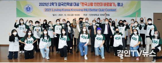 [ 경인TV뉴스 김선근 기자 ] 인천대학교(총장 박종태) 국제지원팀은 지난 3일 인천대 교수회관 1층 다목적실에서 외국인 교환학생을 대상으로 ‘한국사랑, 인천대 바로알기 퀴즈 경연대회’를 열었다.
