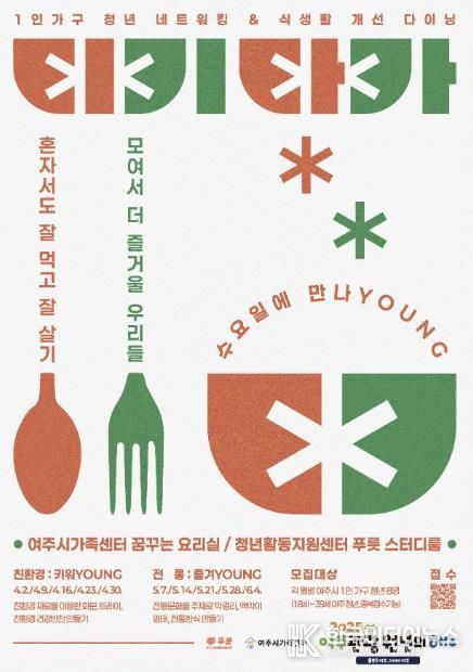 [ 한국미디어뉴스 이보영 기자 ] 여주시청년활동지원센터는 오는 5월, 여주시 1인가구 청년을 위한 네트워킹 및 식생활 다이닝 프로그램'티키타카 : 수요일에 만나영(YOUNG)'을 진행한다고 밝혔다.