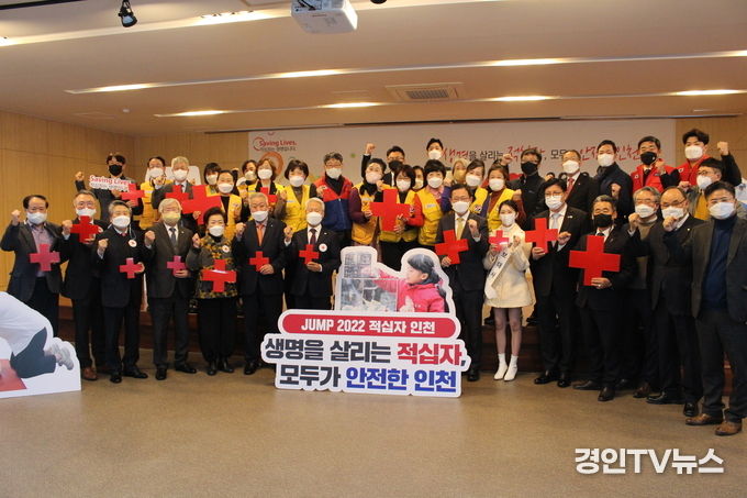 [ 경인TV뉴스 김선근 기자 ] 대한적십자사 인천광역시지사(회장 김창남)는 12월 7일 화요일 대한적십자사 인천지사 4층 강당에서『JUMP 2022 적십자 인천』-생명을 살리는 적십자, 모두가 안전한 인천- 라는 행사명으로 적십자 회비 모금 론칭식을 개최했다고 밝혔다.