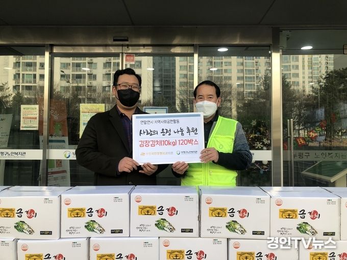 [ 경인TV뉴스 김선근 기자 ] 인천 부평구노인복지관은 부평 국민정형외과의원(원장:강대명)에서 연말연시를 맞이하여 지역사회공헌활동의 일환으로 전개하고 있는 ‘사랑의 온정 나눔, 운동에 동참으로 김장김치(10kg) 120박스를 전달받았다고 밝혔다.