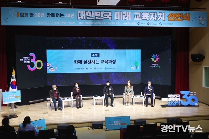 [ 경인TV뉴스 김선근 기자 ] 교육부(부총리 겸 교육부장관 유은혜), 국가교육회의(의장 김진경), 전국시도교육감협의회(협의회장 최교진)는 ‘대한민국 미래 교육자치 선언식’을 12월 10일(금) 14시부터 서울특별시교육청교육연구정보원에서 개최하고, 각 기관별 유튜브 채널로 생중계했다.