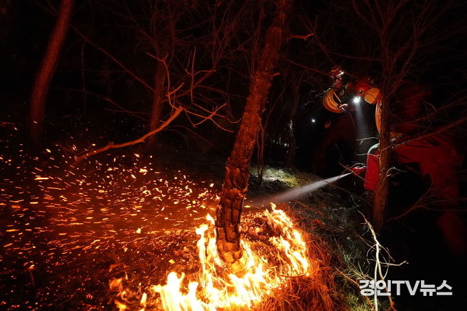 [ 경인TV뉴스 김승희 기자 ] 산림청 중앙산불방지대책본부는 13일 오후 21시 33분경 경북 경주시 외동읍 죽동리 산 18-1 일원에서 산불이 발생하여 산불진화인력 119명(산불특수진화대 8, 산분전문진화대 30, 산림공무원 22, 소방 59)을 긴급 투입, 1시간여만인 13일 오후 22시 45분경 주불진화를 완료하였다.