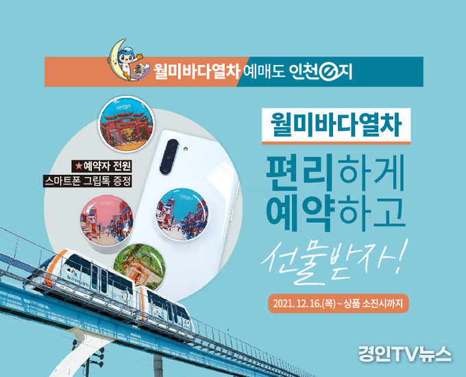 [ 경인TV뉴스 김선근 기자 ] 인천광역시(시장 박남춘)와 인천관광공사(사장 민민홍)는 인천e지(인천스마트 관광도시 여행 앱)를 통해 월미바다열차를 예약하고, 현장에서 탑승하는 선착순 500명에게 선물을 증정하는 이벤트 오는 16일부터 개시한다고 밝혔다.