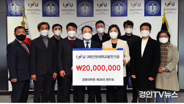 [ 경인TV뉴스 김선근 기자 ] 인천대학교 경영대학원 제38대 원우회(원우회장 장호희)가 12월 14일 (재)인천대학교발전기금에 2천만원을 기탁하였다.