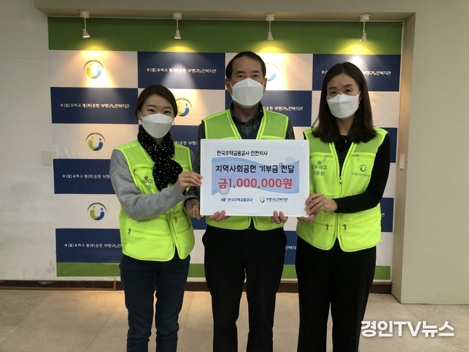 [ 경인TV뉴스 김선근 기자 ] 인천 부평구노인복지관(관장: 최민수)은 한국주택금융공사 인천지사(지사장:박형규)로부터 연말연시를 맞아 복지관에서 전개하고 있는 ‘사랑의 온정 나눔’ 운동 참여 기부금 100만원을 전달 받았다고 밝혔다.