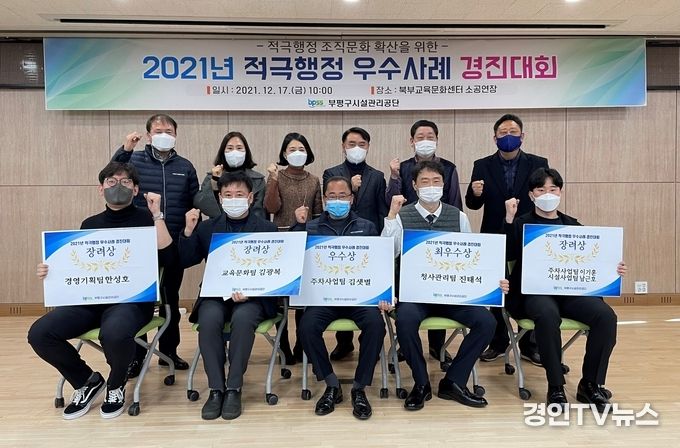 [ 경인TV뉴스 김선근 기자 ] 인천광역시부평구시설관리공단(이사장 장세강, 이하 ‘공단’)은 지난 17일 북부교육문화센터에서 임직원, 지역주민과 구청 담당자가 참석한 가운데 2021년 적극행정 우수사례 발표대회(이하 ‘발표대회’)를 개최했다고 밝혔다.