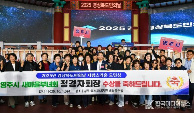 [ 한국미디어뉴스 이보영 기자 ] 영주시는 10월 1일 경주 엑스포대공원 백결공연장에서 열린 ‘2025년 도민의 날 기념식’에서 정경자 영주시 새마을부녀회장이 ‘영주시 자랑스러운 도민상’을 수상했다고 밝혔다.