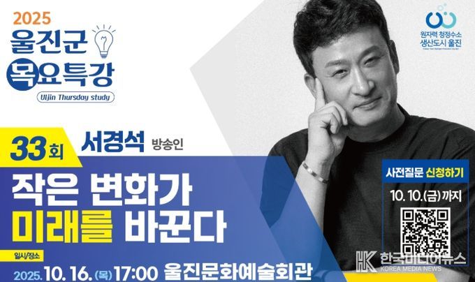 [ 한국미디어뉴스 이보영 기자 ] 울진군은 오는 10월 16일 오후 5시 후포면 울진문화예술회관에서 제33회 울진군 목요특강을 개최한다.