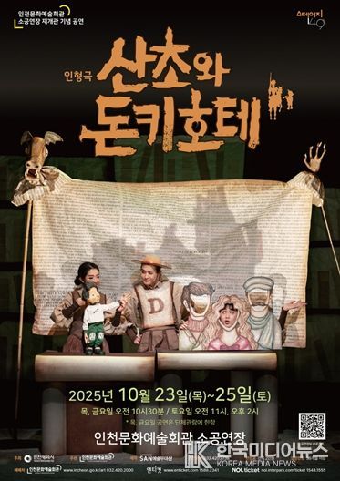 [ 한국미디어뉴스 이원영 기자 ] 인천문화예술회관은 오는 10월 23일부터 25일까지 소공연장에서 예술무대산의 가족 인형극 〈산초와 돈키호테〉를 무대에 올린다. 이번 공연은 어린이 눈높이에 맞춘 명작을 소개하는 인천문화예술회관의 ‘어린이명작무대’의 일환으로 마련됐다.