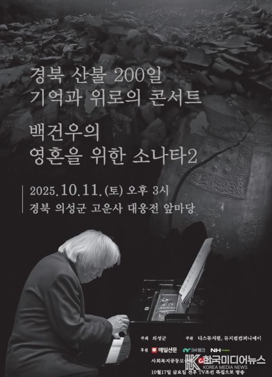 [ 한국미디어뉴스 이보영 기자 ] 의성군은 경북 산불 발생 200일을 맞아 세계적인 피아니스트 백건우의 위로 연주회가 오는 10월 11일 토요일 오후 3시, 의성군 천년고찰 고운사에서 열린다고 밝혔다.