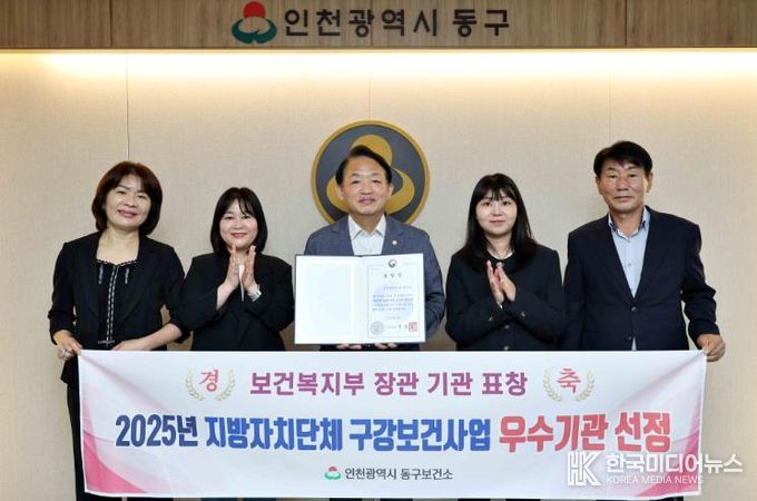 [ 한국미디어뉴스 이원희 기자 ] 인천 동구는 지난달 26일 서울시 용산구 피스앤파크컨벤션서 열린 ‘2025년 지방자치단체 구강보건사업 성과대회’에서 보건복지부 장관상을 수상했다고 밝혔다.