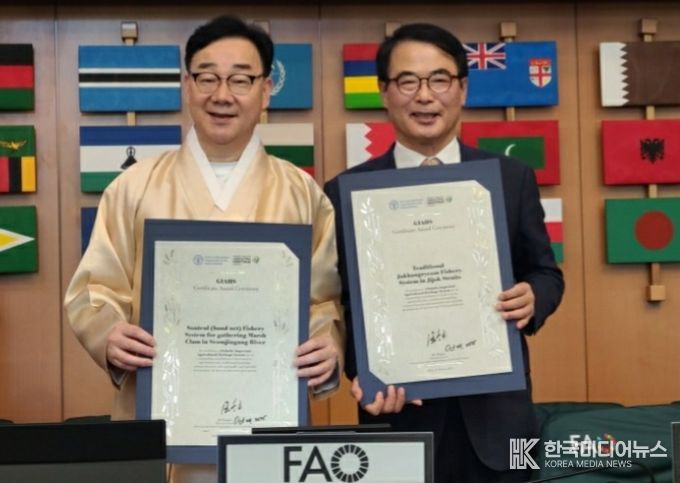 [ 한국미디어뉴스 이원영 기자 ] 경남은 하동 재첩잡이 손틀어업과 남해죽방렴 어업이 10월 31일 국제연합식량농업기구(FAO) 본부가 있는 이탈리아 로마에서 세계중요농업유산 등재 인증서를 받았다고 3일 밝혔다.