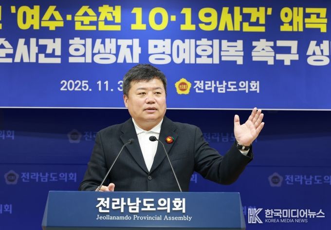 [ 한국미디어뉴스 이종철 기자 ] 전라남도의회 정영균 의원(순천1)이 지난 11월 11일 열린 여순사건지원단 행정사무감사에서 여순사건의 시실 왜곡된 인식 확산과 청소년 세대의 역사 인식 부족 문제를 지적하며 “도 차원의 체계적인 모니터링 시스템 구축과 교육청과의 연계 교육 확대가 시급하다”고 강조했다.