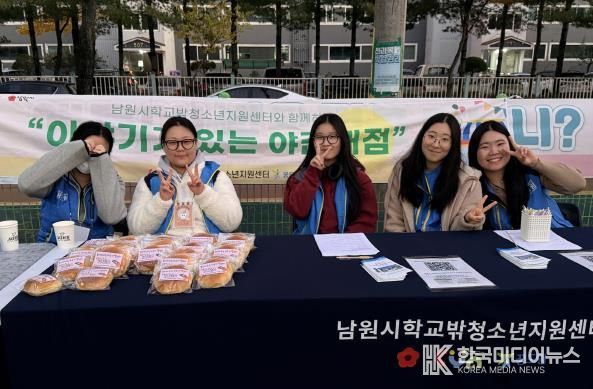 [ 한국미디어뉴스 이종철 기자 ] 남원시학교밖청소년지원센터는 지난 11월 10일 도통동에 위치한 물방개 놀이터에서 ‘이야기가 있는 야간 매점’을 주제로 현장 봉사(아웃리치)를 실시했다고 밝혔다.