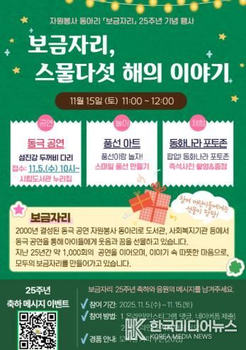 윤정임 보금자리 회장은 “시민들과 함께한 25년은 매 순간이 감사와 감동의 시간이었다”며 “이번 행사를 통해 봉사의 기쁨을 함께 나누고 싶다”고 전했다.