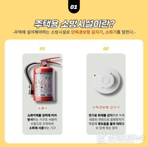 주택용 소방시설은 화재 초기 진화에 효과적인 소화기와 연기를 감지해 경보음을 울리는 단독경보형 감지기로 구성된 기본 안전장치다.