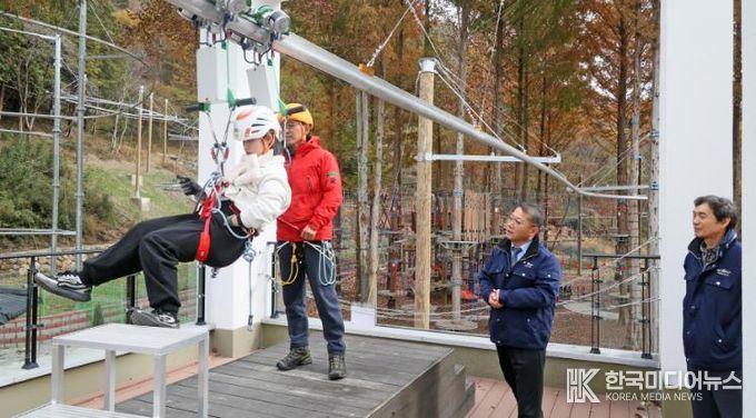 이진관 부군수는“시설물 안전성 확보를 최우선으로 하여 운영이 될 수 있게 하고, 현재 시범운영으로 운영 노하우 및 보완 및 개선 사항을 찾아 반영 후 추후 산림레포츠시설 정식 개장 시 이용객들에게 이색 체험과 즐거움을 느낄 수 있도록 최선을 다하겠다”말했다.