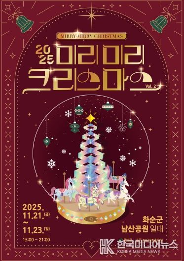 [ 한국미디어뉴스 이종철 기자 ] 화순군문화관광재단(이사장 구복규)은 오는 11월 21일부터 23일까지 사흘간 화순읍 남산공원과 고인돌 전통시장 일대에서 ‘2025 미리미리 크리스마스 vol.2’를 개최한다고 밝혔다.