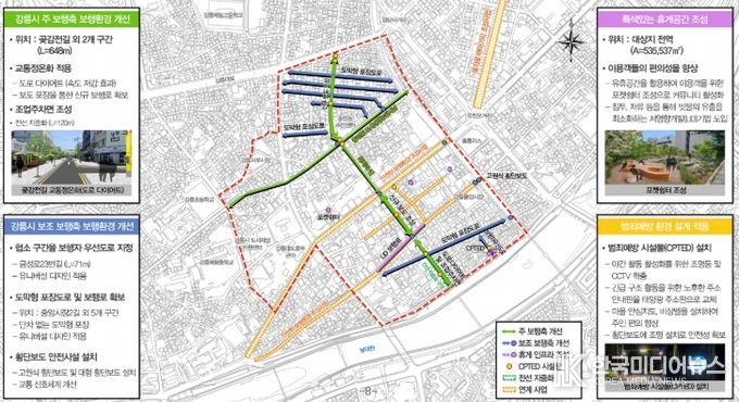 주요 사업은 ▲주 보행축 도로다이어트 및 보도 확보 ▲보행자 우선도로 도입 ▲고원식·대형 횡단보도 설치 ▲포켓쉼터·녹지 기반 휴게공간 조성 ▲범죄예방 시설물(CPTED) 기반 야간 안전환경 강화 등이다.