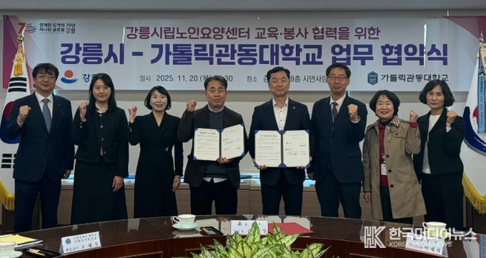 [ 한국미디어뉴스 이원영 기자 ] 강릉시와 가톨릭관동대학교는 20일 오전 10시 30분 시청 8층 시민사랑방에서 강릉시립노인요양센터 교육·봉사 협력을 위한 업무협약을 체결한다.