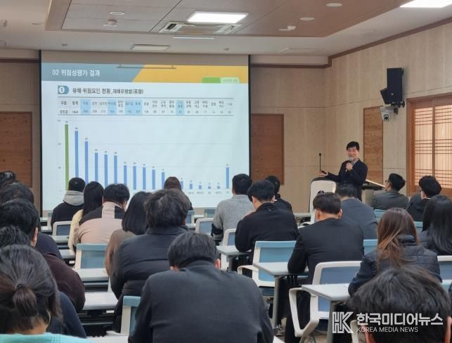 이번 교육은 도로유지보수, 시설물 관리, 환경미화 등 군이 수행하는 다양한 작업현장에서 도출된 위험요인을 직원들이 이해하고, 개선 방안을 공유하여 실제 업무에 반영할 수 있도록 하기 위해 마련됐다.