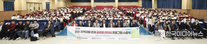 [ 한국미디어뉴스 이원영 기자 ] 인천광역시교육청은 21일 고등학교 20개교 세계시민교육 동아리 학생과 교원, 학부모, 대학 지도교수, 국제기구 관계자, 하나금융TI 멘토 등 350여 명이 참석한 가운데 ‘2025 인천 지역자원 연계 글로컬 리더십 프로그램’ 수료식을 개최했다.